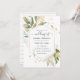 Watercolor floral greenery wedding invitation in pastel shades with gold geometric frame and elegant handwriting typography customisable to your event specifics.