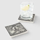 The coasters are gorgeous, a quality feel and heavy weight. They look like a precious archeological find. A rustic stone juxtaposed with a modern floral black and white print. I like the way the print goes slightly imperfect on the cut stone edges giving them a kind-of natural beauty.