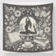 A black and white tapestry featuring a meditating silhouette surrounded by nature and symbols of tranquillity like books, candles, and a steaming cup. Perfect for creating a serene and introspective atmosphere.