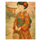 This stunning art print captures the grace and elegance of traditional Japan. A young woman in a vibrant kimono walks peacefully beneath blooming cherry blossoms, framed by a red torii gate and tranquil shrine. Ideal for home decor, this print blends vintage Japanese art aesthetics with warm, nostalgic tones.