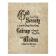 "God grant me the SERENITY to accept the things I cannot change; the COURAGE to change the things I can; and the WISDOM to know the difference.” Peace, strength, healing and understanding at a time of turmoil, despair or uncertainty. Known as “The Serenity Prayer”, Associated with Recovery and 12 Step Programs. Used by AA (Alcoholics Anonymous). Prayer written by Reinholt Niebuhr. Design: Black Calligraphy with natural antique background. Paula Bragg 2011 Text: "God grant me the SERENITY to accept the things I cannot change; the COURAGE to change the things I can; and the WISDOM to know the difference.”