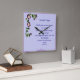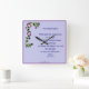 Purple flowers, serenity prayer, clock