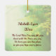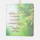 Serenity Prayer personalized ceramic Christmas ornament depicts a nature scene with the sun shining through the forest and highlighting a beautiful tree with green and yellow leaves. It features the beloved prayer, "God, grant me the Serenity to accept the things I cannot change; Courage to change the things I can, And the Wisdom to know the difference." Customize the back with a name, date and blessing or the details of your choice._