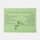 The Serenity Prayer displayed side by side in both Irish/Gaelic and English. Black text on green background with small spray of shamrocks