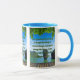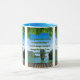 This mug features the serenity prayer over a picture of a lakeside view and a beautiful scene and background. The rim & handle are glazed in matching colours available in 11-ounce or 15-ounce sizes microwave and dishwasher safe ceramic construction.