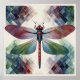 Surrounding the dragonfly, geometric patterns emerge from each corner, forming an elegant frame that accentuates the delicate beauty of the insect. These patterns add a touch of modernity to the timeless allure of the dragonfly, creating a stunning contrast that draws the eye and captivates the imagination.