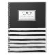 A funny and lighthearted striped office Notebook featuring a pair of retro spectacle glasses followed by your name in a classic style font underneath. Surrounding this are stylised yet messy black and white stripes to offset the retro look.