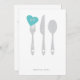 Celebrate your rehearsal dinner with this 'serving love' invitation. Silverware with aqua blue heart. Space to write more information on the backside.