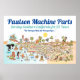 Bright and colourful scene offers a spectacular view of Southern California - wacky characters frolic on the beach and desert of SoCal showcasing Los Angeles, Long Beach, San Diego, Santa Barbara, Riverside, Palm Springs, Anaheim, Anza Borrego and Joshua Tree parks as well as the border cities of Tijuana, Tecate and Mexicali. This charming scene has it all – a surfer hangs ten while a mermaid lounges on a rock, a killer whale leaps out of the water, zoo animals greet the tourists, a muscular beach couple both flex to impress as a T-Rex roars a challenge and a tank moves into position and much more…