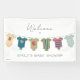 Welcome your guests to your Baby Shower with this sweet Sesame Street welcome banner featuring illustration of baby bodysuits representing Sesame Pals Big Bird, Cookie Monster, Oscar the Grouch, Bert, Ernie, and Abby Cadabby. Personalise by adding your name and shower date!