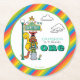 Bring the fun of Sesame Street right to your party tables with these vibrant, personalized "ONE" coasters! This circular coaster features a lively scene with Big Bird, Elmo, Oscar the Grouch, and friends stacked up under the iconic "123 Sesame Street" sign. The design is bordered by a bright, eye-catching rainbow striped edge. The customizable text clearly states "CAMERON IS TURNING one" in fun, contrasting colors. Perfect for protecting surfaces while adding a festive, character-filled accent to any first birthday party décor.