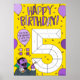 This cute yellow and purple poster will help your five-year-old child feel special on their birthday. Features an illustration of Count von Count, showing your son or daughter how to colour by numbers. They will colour in a big number 5, and if they follow the instructions correctly, the resulting art will look 3D! The colour guide on the left is made of shapes you can edit in the Personalise screen, so you can change them to your child's favourite colours.
