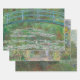 Set of 3 wrapping paper sheets with Claude Monet's paintings including the sunflower gardens, Japanese foot blue bridge, and the artist's garden. CCO license art.