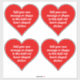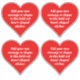 Four bold red heart shaped stickers that contain your message. Add your own wording and make it personal!