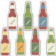 This die-cut stickers set is ready to be personalised with names or your own custom text. Add the same text to each bottle or different names to each. The beer bottle shaped stickers depict green and brown glass beer bottles with different coloured labels. Create custom party supplies or labels for your own bar or home brewing operation.