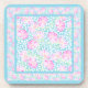 A set of very pretty, square cork-backed Coasters, with a pattern of pink roses on a sky blue background, dotted with white butterflies.