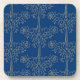 A set of 6 stylish cork-backed coasters with a gold-effect floral pattern on a deep blue background, from a digital design by Judy Adamson.