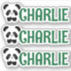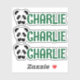 Our Set of Three Personalised Panda Name Labels combines cuteness and practicality to add a touch of charm to your belongings. Each label features a bold green print with a custom name, making it easy to identify your items. The adorable illustration of a panda bear adds a playful and delightful element to the design. Whether you're labelling school supplies, lunch boxes, or personal belongings, these labels are perfect for kids, panda enthusiasts, or anyone who loves cute and functional accessories. The set includes three cutout labels neatly arranged on a single sticker sheet, ensuring convenience and versatility. Stick them on books, notebooks, water bottles, or any other item you want to personalise and add a touch of panda-themed cuteness. Get our Set of Three Personalised Panda Name Labels and make your belongings uniquely yours!
