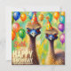 2 partying emus celebrating Seth's birthday. The greetings on the card are "Seth Happy Birthday". On the back of the card is a small version of the same picture. There is plenty of room to write a message. Made with the assistance of Bing.