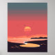 A stunning retro sunset style illustration that will transport you to warmer climates, summer vacations and coastal places.