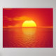 Setting Sun over Orange Sea Calm Ocean Sunset Poster