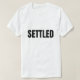 Minimal text design with the word “SETTLED”. Calm, grounded, and emotionally steady — a quiet statement of having arrived within yourself. Clean and modern typography.