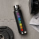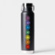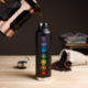 A graphic design of the seven chakras on a water bottle.