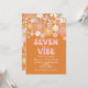 Seven is a vibe Groovy Retro Floral 7th birthday Invitation