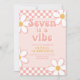 Seven is a Vibe Retro Check Pink Daisy Invitation