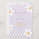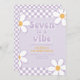 Seven is a Vibe Retro Check Purple Daisy Invitation