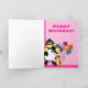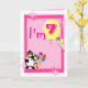 I'm seven birthday card with funny clown, penguin and ice cream and balloons, on a pink background. Easily personalise this design by adding or changing the text.