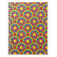 This notebook features a trippy graphic pattern inspired by the 1970s with overlapping discs in a rainbow of colours centred with a slightly twisted rayed sun. Edit design to change the background hue.