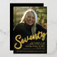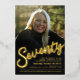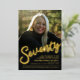 Seventy bold gold foil script text or your own foil colour. Personalise this 70th birthday party script photo birthday invitation with your own birthday party event details, and a photos of your birthday girl. Other years and matching items are available. © Original design by Sarah Trett for www.mylittleeden.com on Zazzle.