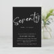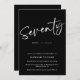 This is a simple and modern 70th surprise birthday party invitation. It is a simple and stylish handwritten script design in classic black and white. Please contact the designer for any queries about this design.