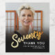 Seventy gold script text with one large photo of your choice birthday party thank you favour wine stickers. Personalise this 70th birthday party design with your own birthday girl or boys name and message of thanks. Other years and matching items are available and can be created by request. © Original design by www.mylittleeden.com on Zazzle.