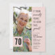 Create unforgettable moments with our modern 70th birthday party invitations! Chraacterised by a sophisticated pink background and an amusing saying - 'It took seventy years to look this good!', these invites also offer a convenient text template you can customise easily. Add in the celebrant's photo, and you've got an invitation that’s as extraordinary as the milestone it’s celebrating!
