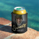 Seventy gold coloured style effect script text now and then black can cooler. Personalise these stubby holders with two photos of your birthday boy or girl turning 70, one on each side (for past and present), plus add your own name or message. Ideal for a 70th birthday party or surprise seventy years event. Other years and matching items are available. © Original design by Sarah Trett for www.mylittleeden.com on Zazzle.