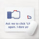 A mug for people who are annoyed with all those 'Like' requests. Shows the classic 'Like' icon with a severed thumb. Text reads as: "Ask me to click 'Like' again. I dare you."