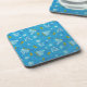 Set of 6 cork-back, high gloss plastic coasters with an image of spinning dreidels, lighted gold menorahs and gold coins on blue. See matching round sandstone coaster and round paper coaster. See the entire Hanukkah Coaster collection under the HOME category in the HOLIDAYS section.
