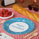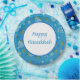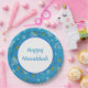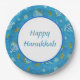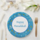 Set of eight 9” paper plates with an image of spinning dreidels, lighted gold menorahs, and gold coins on blue, and an optional white centre with a blue border and customisable holiday sentiment. See matching mug, square ceramic tile and coasters. See the entire Hanukkah Plate collection under the HOME category in the HOLIDAYS section.