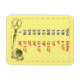 Handy magnet yardage measurement chart. Shows yard to inches conversions. Handy for sewers and quilters to help them figure out yardage for their craft projects. Design features a red stick border, vintage scissors and measuring tape.
