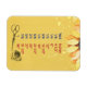 Handy magnet yardage measurement chart. Shows yard to inches conversions. Handy for sewers and quilters to help them figure out yardage for their craft projects. Design features a red stick border, vintage scissors and measuring tape. Lovely sunflower yellow design.