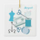 A beautiful blue sewing and quilting Blue design with a sewing machine, tailors dummy, scissors threads, bobbins and pins all on a white background. A great gift item for any quilter or sewer. Can be personalised by changing the name "Margaret" to another name to make it extra special gift for family and friends who are avid sewers or quilters.