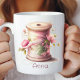 This charming design features a spool of thread with flowers and leaves in soft pastel pinks and greens. This design can be personalised with a name to give to that special sewing lover in your life as a unique gift for any occasion.