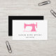 Elegant business cards for seamstresses, fashion designers, tailors, alterations businesses, or costume designers feature a sewing machine illustration in chic vibrant pink with two lines of custom text beneath in crisp black. Customise the back with your full contact details in white lettering on a black background.