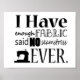 Show your love for fabric and all things sewing by sporting this awesome "I have enough fabric, said no seamstress ever!" quote! Also makes a great gift for the fabric loving hook sewer in your life! Remember, you can NEVER have enough fabric, period!!