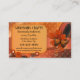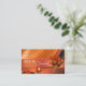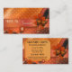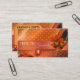 A business card featuring a creative design in scrapbook style and warm oranges. Perfect for anyone in the handmade crafting business or a seamstress, quilting business, sewing or other creative activity.