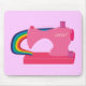 This delightfully crafty retro sewing illustration features a bright pink sewing machine with the word "sew" on it stitching a colourful rainbow with pink thread! This original vintage inspired sewing design is the perfect unique gift to buy for the seamstress or tailor in your life!