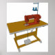 A sewing table with a sewing machine on it. This design looks really effective on these Poster