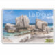 Seychelles La Digue Anse Marron beach design for holiday. Seychelles in Indian Ocean island landscape with beach panorama souvenir for travel La Digue and Praslin. Seychelles Beach Artwork for Mahe Holidaymakers and Backpackers.